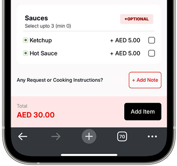 Clear dish details, add-ons,